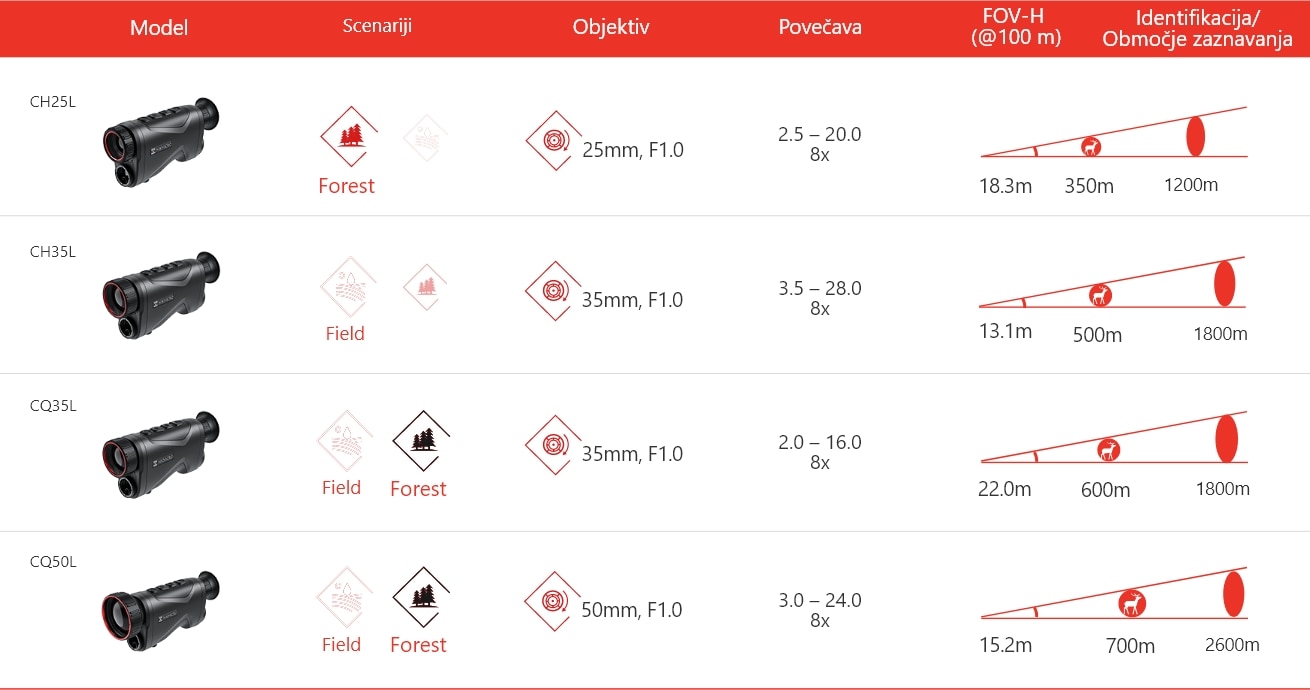 Vrhunska preciznost z integriranim LRF! Z neprekosljivo občutljivostjo do NETD < 13 mK in natančnim merjenjem razdalje do 1000 m nudita popolno jasnost. Ergonomska oblika in napredni algoritmi zagotavljajo profesionalno izkušnjo opazovanja v vseh svetlobnih razmerah.