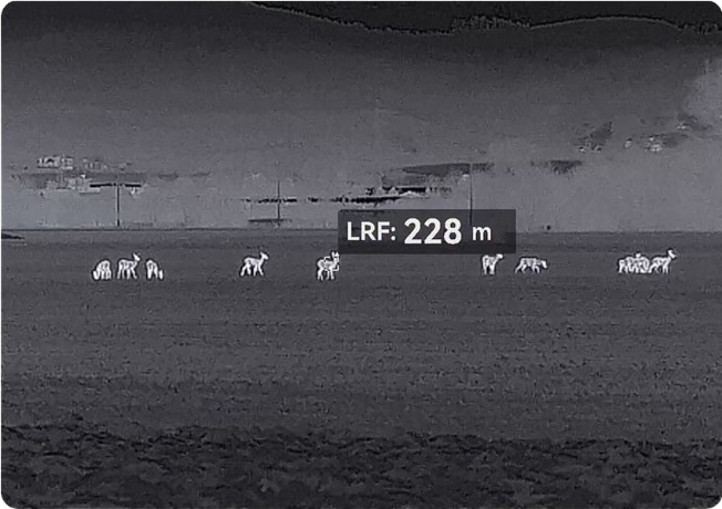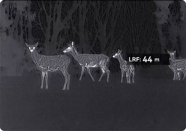 Razdalja od divjadi je bistvenega pomena za varen strel. Vgrajeni laserski daljinomer v termovizijskem monokularju HIKMICRO CONDOR LRF 2.0 uporabnikom omogoča merjenje razdalj do 1000 metrov z natančnostjo ±1 meter v različnih scenarijih, kar zagotavlja najbolj natančno merjenje situacije.