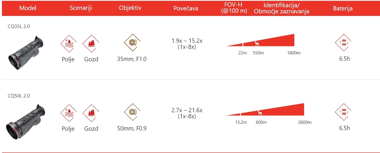 HIKMICRO termovizijski monokular CONDOR LRF 2.0 uporablja zmogljiv in občutljiv termični detektor z NETD <15mK. Za manj zahtevne pa je tu termovizijski monokular CONDOR LRF z NETD < 20mK